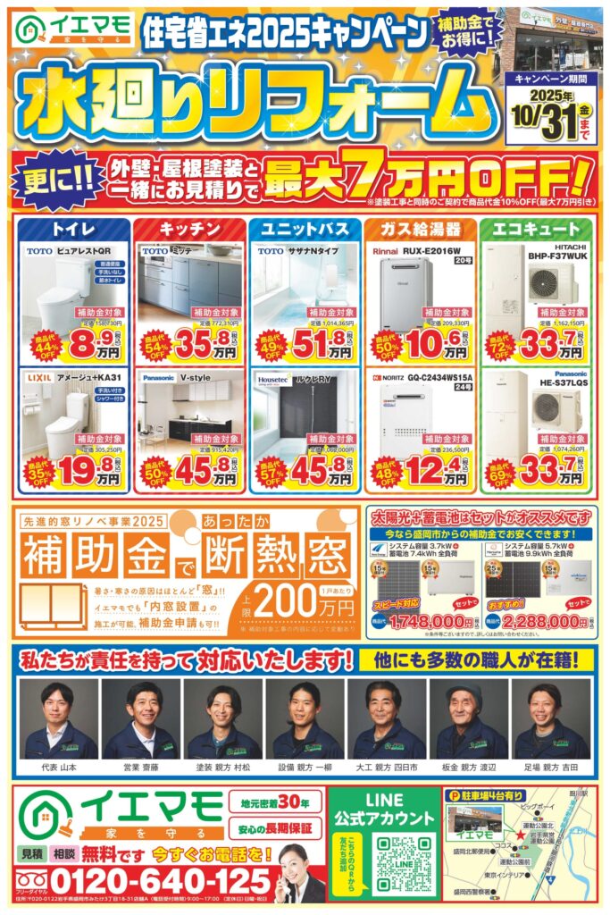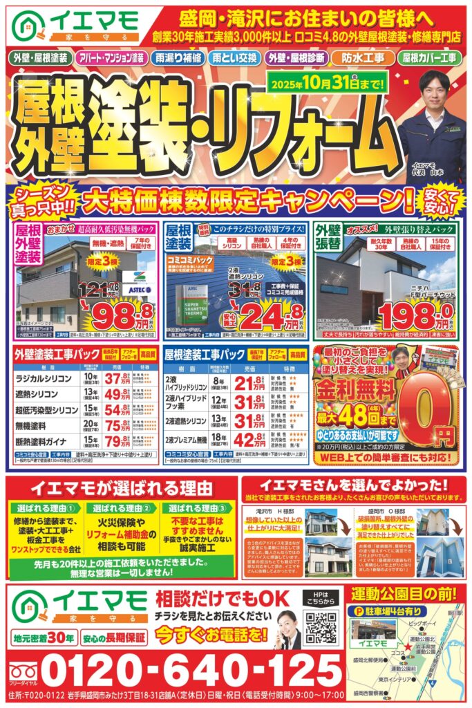 【最新情報】盛岡・滝沢地域の方必見!秋の住まい応援キャンペーン!屋根外壁塗装&水回りリフォームが超特価【10月チラシ】
