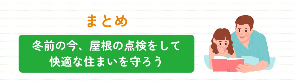 - まとめ|冬前の今、屋根の点検をして快適な住まいをま守ろう