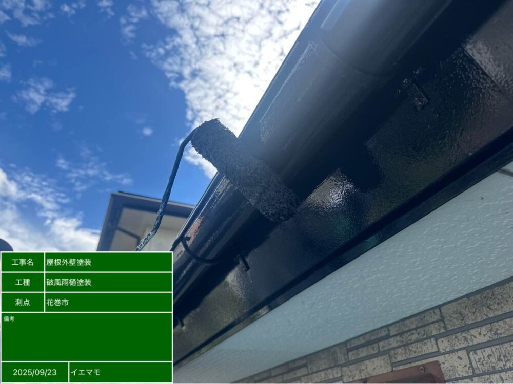 破風と雨樋部分も同時に塗装していきます。