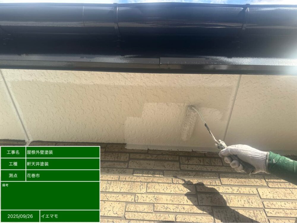 軒天も同時に塗装を進めていきます。