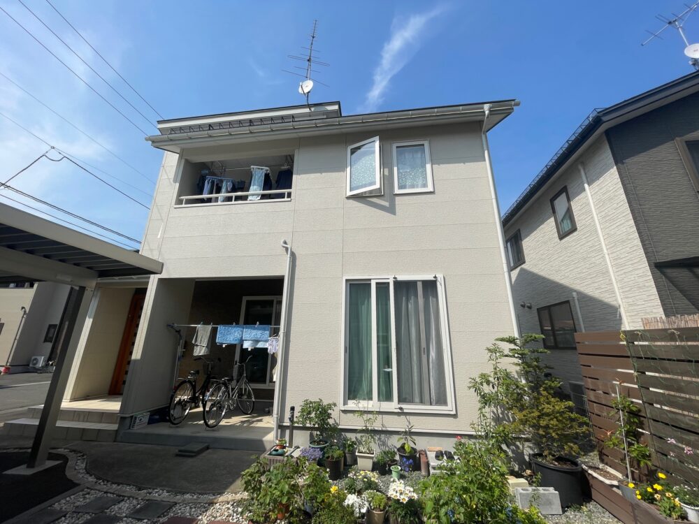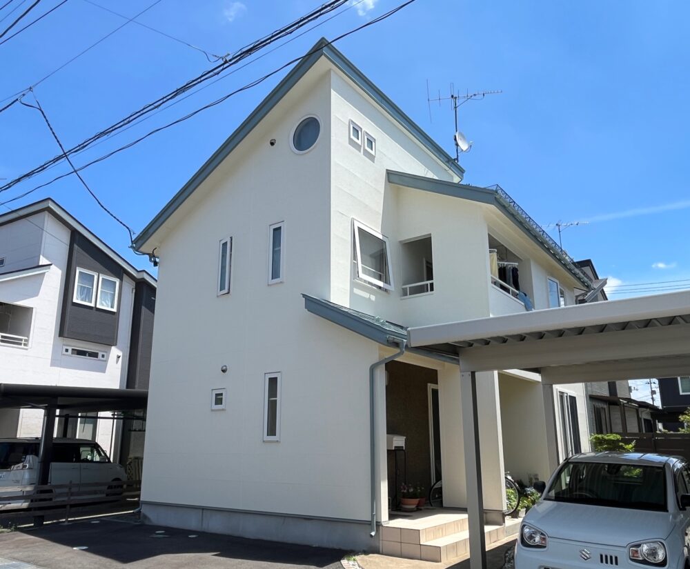 外壁の色は、アステックペイントの標準色であるブロークンホワイトでした。おしゃれな色で素晴らしい仕上がりとなりました!お客様も大満足でした!